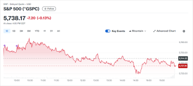 - S&P500지수: 7.20포인트(0.13%) 하락하여 5,738.17에 마감.